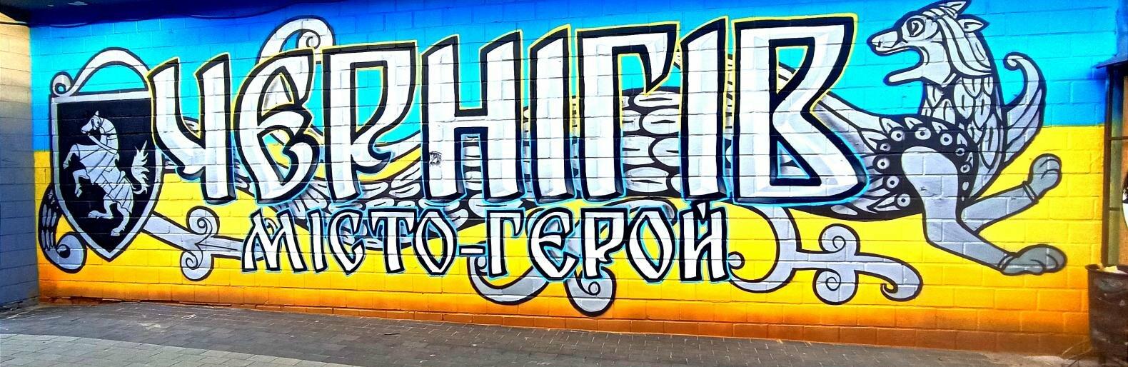 Чернігівські художнки 19 травня 2022 року створили патріотичне граффіті «Чернігів - місто герой». Воно знаходиться на стіні магазину «Сафарі», що на перетині вулиці П'ятницька та проспекту Перемоги. |